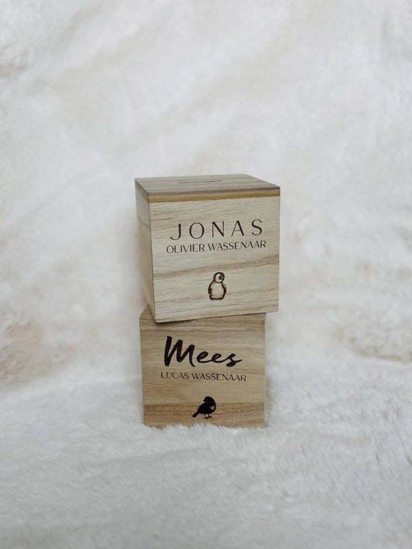Een gepersonaliseerd spaarpotje is toch te leuk! Volledig te personaliseren naar jouw wens. Geef jouw wensen aan bij de opmerkingen.