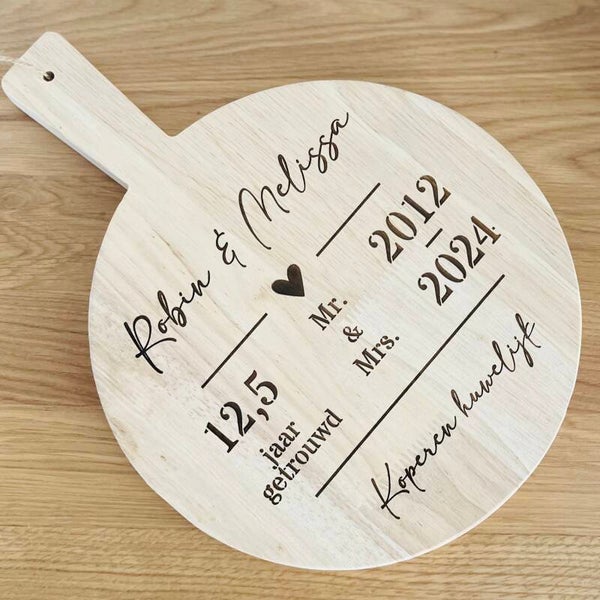 Een leuke gepersonaliseerde borrelplank is áltijd een goed cadeau! Bijvoorbeeld voor een huwelijk, een verjaardag, een jubileum of noem maar op.