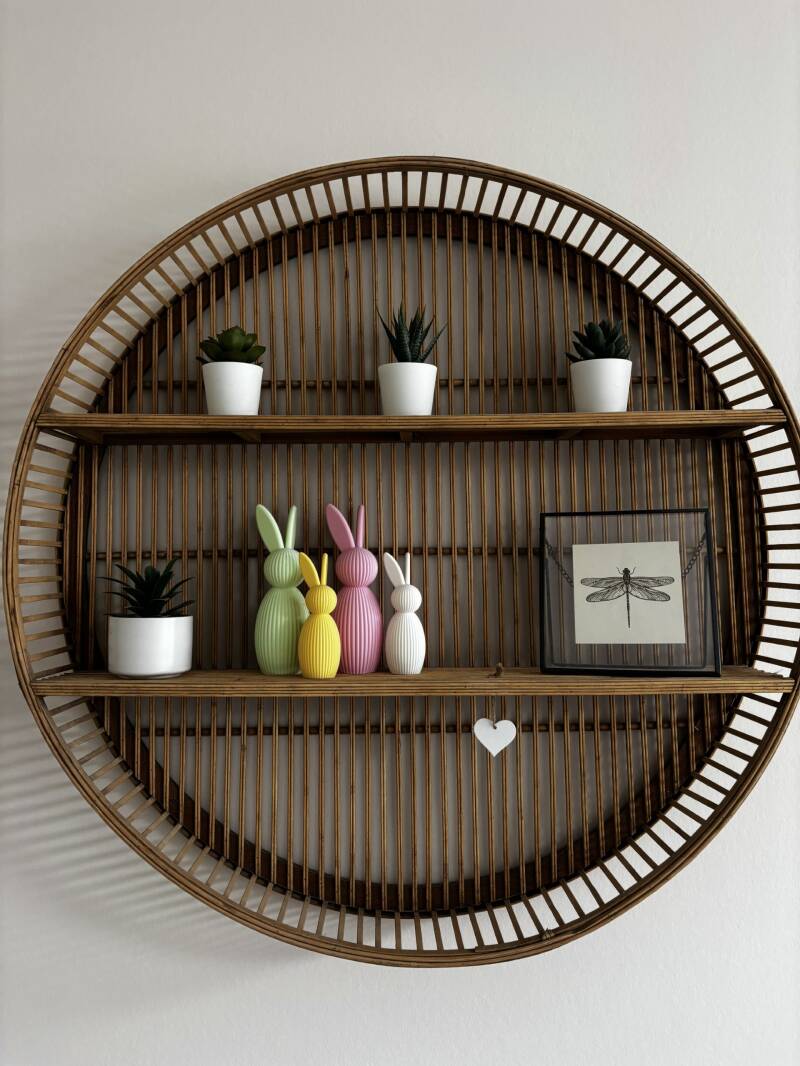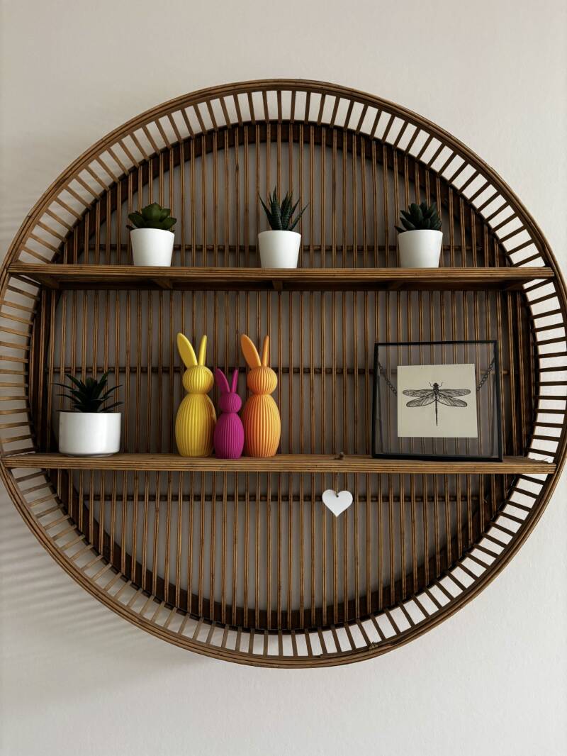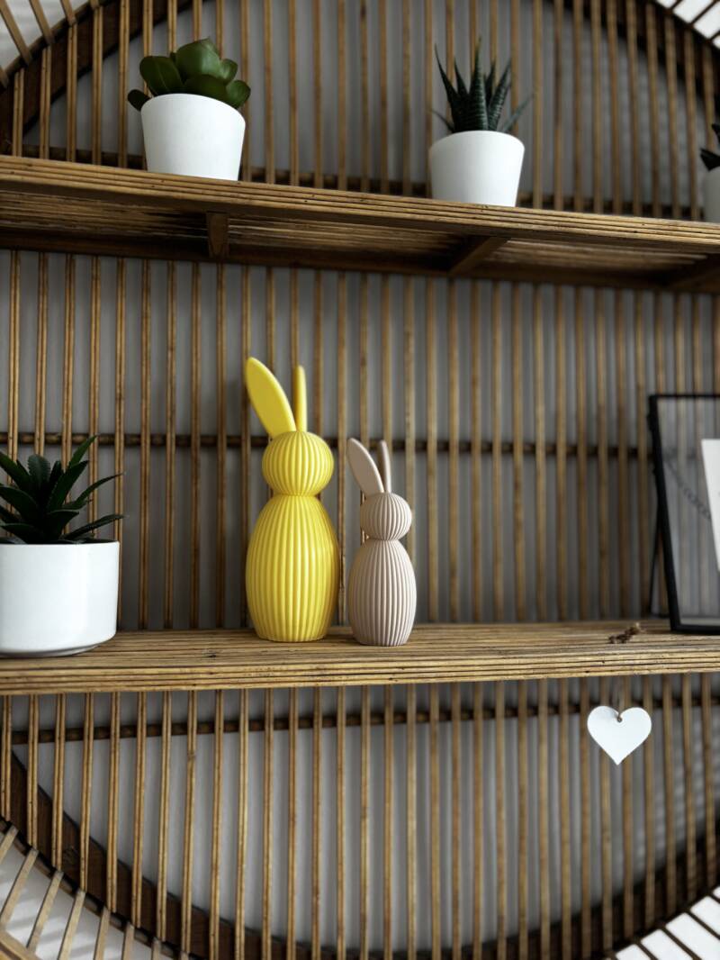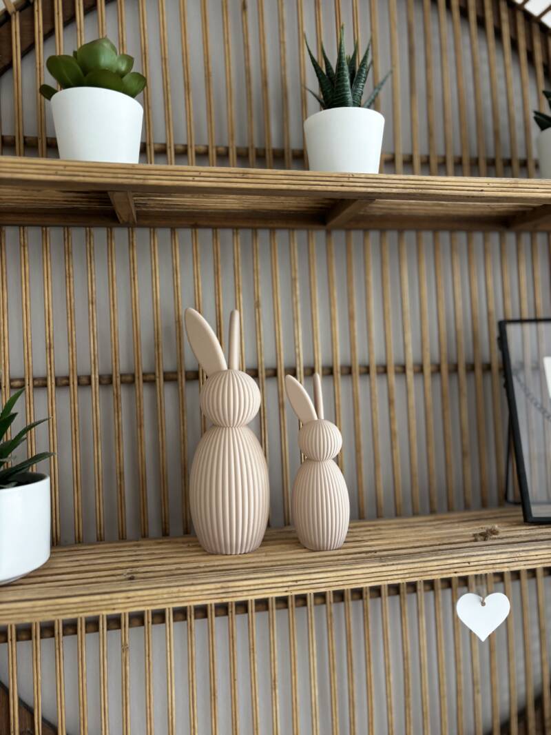 Het paashaasje is 12cm hoog. Er is ook een grotere variant van 17cm. Deze vindt je in de webshop!