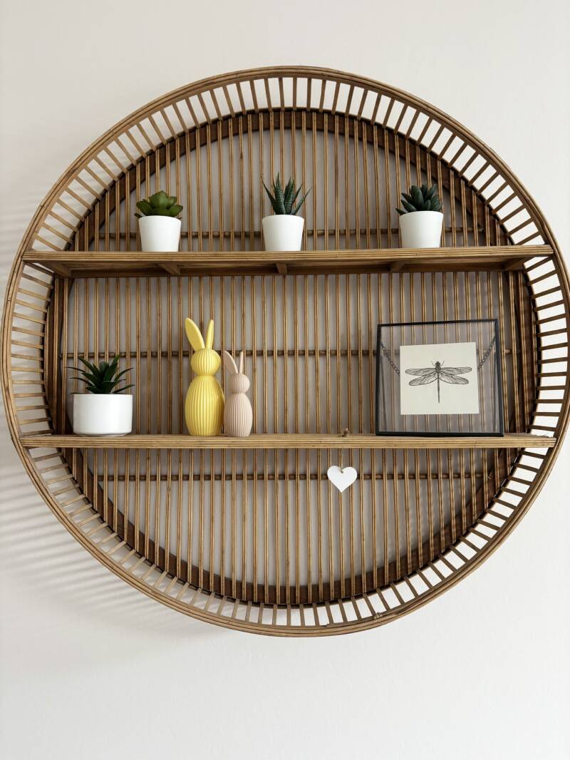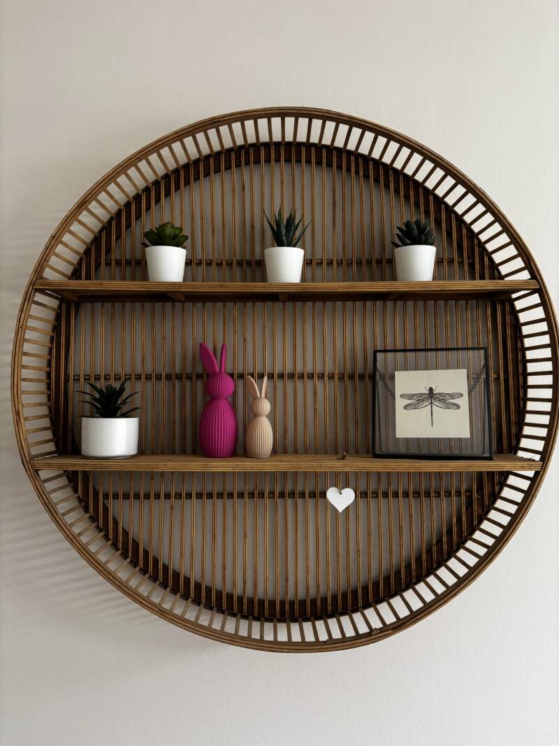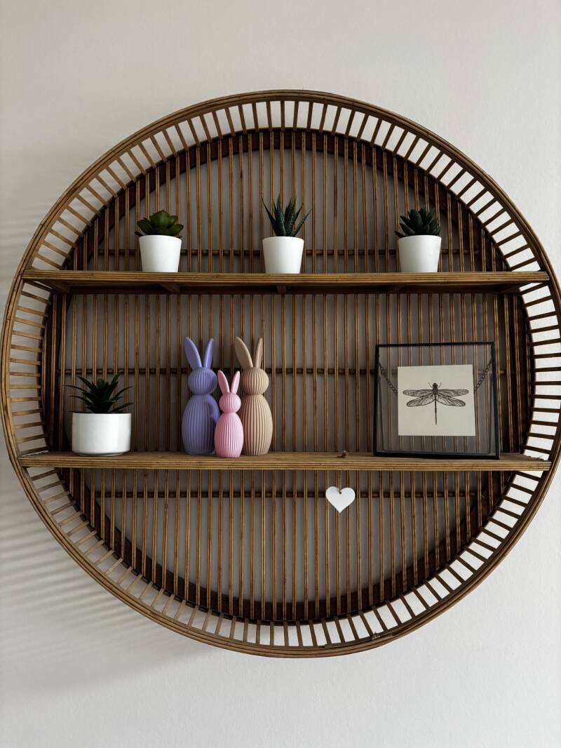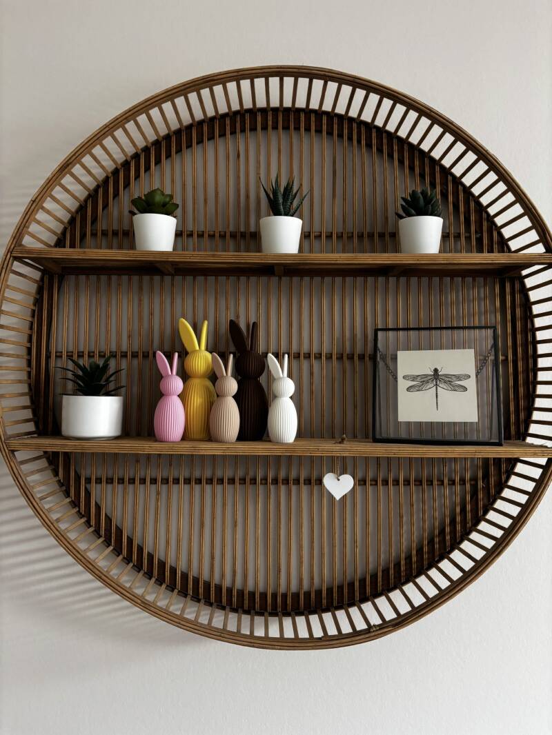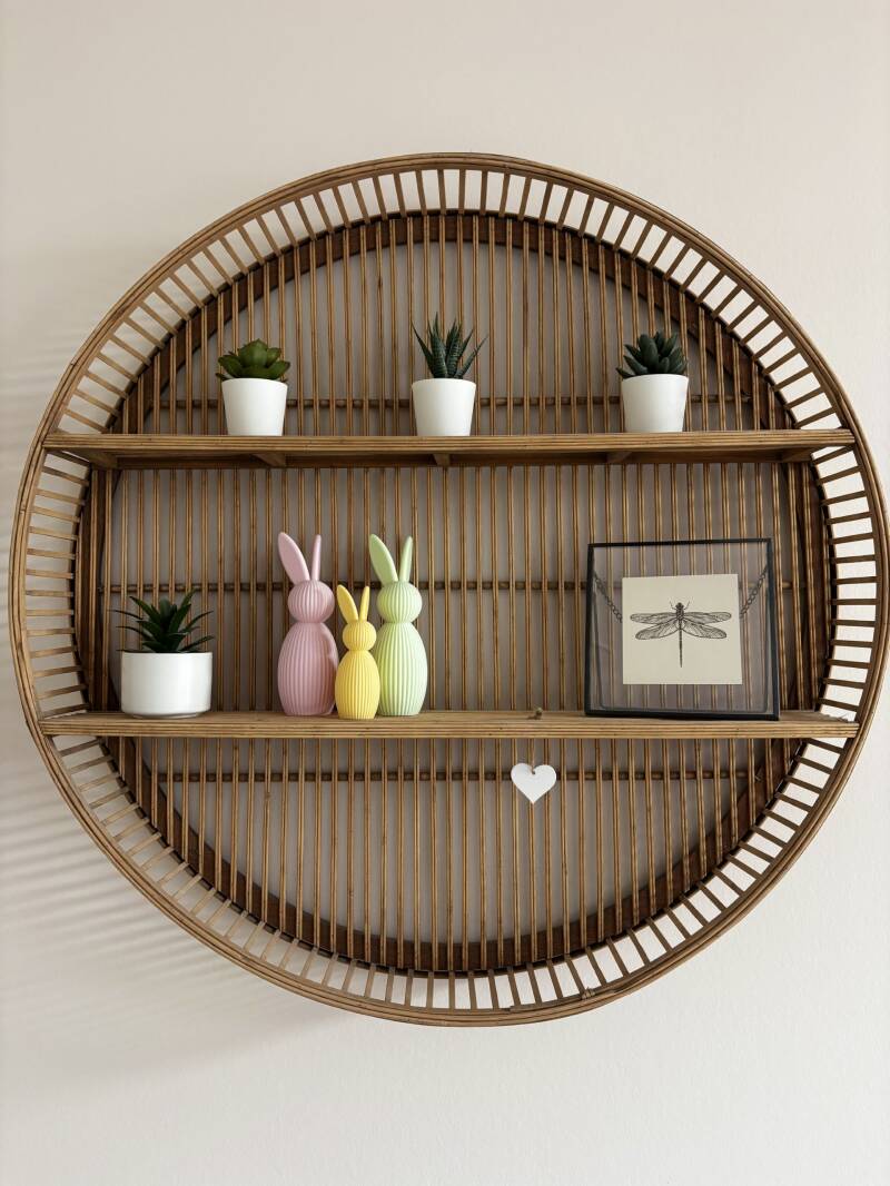 Het paashaasje is 12cm hoog. Er is ook een grotere variant van 17cm. Deze vindt je in de webshop!